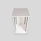 ワゴン側面端子盤を取り付けた場合のワゴン内配線がラクにできるように、スペースを拡げました。また、ワゴン側面端子盤を取り付けない場合でも、機器間の配線ケーブルを這わせておくスペースとして活用できます。